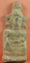 พระปิดทวารชันเข่าโบราณ ยันต์ยุ่ง เนื้อโลหะ สภาพสวยมาก
