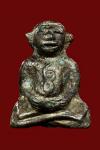 พระปิดทวารชันเข่าโบราณ ยันต์ยุ่ง เนื้อโลหะ สภาพสวยมาก