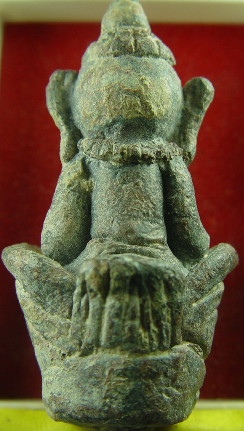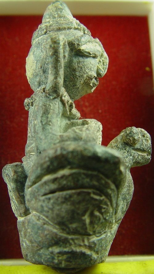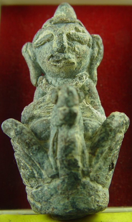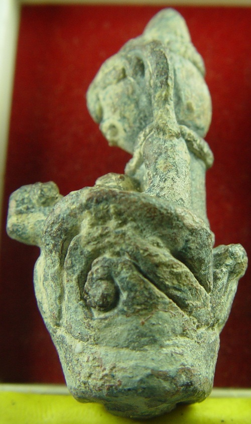 อุปคุตเขมรพันปี (กรุปราสาทภเตชมา) เนื้อสำริดขอมโบราณพันปี มีน้ำหนักหน่วงมือมากครับ ฐานกว้าง ๒ เซนติเมตร สูง ๓ เซนติเมตร จากฝั่งเขมร กรุเขมร กรุณาสังเกตุคราบกรุของกรุปราสาทภเตชมานะครับ เป็นสนิมแดง ต่างจากกรุปราสาทเขาขาด ลักษณะศิลปะก็ต่างกันครับ สวยมากครับ สมบูรณ์ ๑๐๐% สภาพวัตถุมงคลอายุ ๑๐๐๐ ปีต้องเป็นอย่างนี้นะครับ ************* ********* การสร้างรูปหล่อทางพระพุทธศาสนา ตามปราสาทต่างๆของขอมโบราณนั้นเกิดขึ้นในช่วงที่มีการเปลี่ยนเทวสถานเป็นพุทธสถาน ดังนั้นรูปหล่อที่บรรจุกรุตามปราสาทต่างๆนั้นจึงผสมผสานระหว่างพุทธศาสนาคือ พระพุทธ พระสังกัจจายน์ พระอุปคุต เป็นต้น ส่วนรูปหล่อทางพราหมณ์นั้น ส่วนมากจะเป็นเทพ เช่นพระนารายณ์ พระพิฆเณศ เป็นต้น ดังนั้นความขลังของวัตถุมงคลเหล่านี้จึงเป็นที่ยอมรับกันโดยทั่วเพราะผ่านพิธีกรรมทั้งสองศาสนาครับ |