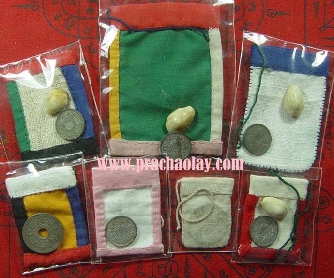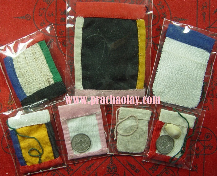 มรดกคุณแม่บุญเรือน ๔ .....never seen before ถุง ๒ ๓ ๕ ๖ ๗ กษัตริย์ คุณแม่บุญเรือน โตงบุญเติม แถวบนจากซ้าย: ๑. ถุง ๕ กษัตริย์ น้ำเงิน เขียว ขาว แดง ดำ ขนาด ๓.๗x๕ เซนติเมตร พร้อมเหรียญขวัญถุง และเบี้ย ๒. ถุง ๗ กษัตริย์ แดง เหลือง ชมพู ขาว ดำ เขียว น้ำเงิน ขนาด ๕.๕x๗.๕ เซนติเมตร พร้อมเหรียญขวัญถุง และเบี้ย ๓. ถุง ๓ กษัตริย์ เขียว ขาว น้ำเงิน คุณแม่จารคำว่า “ พุทโธ” ขนาด ๔x๖ เซนติเมตร พร้อมเหรียญขวัญถุง และเบี้ย แถวล่างจากซ้าย: ๔. ถุง ๖ กษัตริย์ เขียว เหลือง ดำ น้ำเงิน แดง ขาว ขนาด ๓.๕x๔.๕ เซนติเมตร พร้อมเหรียญขวัญถุง ๕. ถุง ๒ กษัตริย์ ขาว ชมพู คุณแม่จารคำว่า “บร ขวัญถุง พุทโธ” ขนาด ๓x๔ เซนติเมตร พร้อมเหรียญขวัญถุง ๖. ถุง ๒ กษัตริย์ ขาว ชมพู คุณแม่จารคำว่า “บร ขวัญถุง พุทโธ” ขนาด ๒.๓x๓.๔ เซนติเมตร ๗. ถุง ๓ กษัตริย์ เขียว ขาว แดง คุณแม่จารคำว่า “พุทโธ” ขนาด ๓.๒x๔ เซนติเมตร พร้อมเหรียญขวัญถุง และเบี้ย สุดยอดของสุดยอด ที่หาไม่ได้อีกแล้ว
