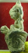 อุปคุตเขมรพันปี (กรุปราสาทภเตชมา:บัณฑายฉมาร์) เนื้อสำริดขอมโบราณพันปี มีน้ำหนักหน่วงมือมากครับ ฐานกว้าง ๒ เซนติเมตร สูง ๓ เซนติเมตร จากฝั่งเขมร กรุเขมร กรุณาสังเกตุคราบกรุของกรุปราสาทภเตชมานะครับ เป็นสนิมแดง ต่างจากกรุปราสาทเขาขาด ลักษณะศิลปะก็ต่างกันครับ สวยมากครับ สมบูรณ์ ๑๐๐% สภาพวัตถุมงคลอายุ ๑๐๐๐ ปีต้องเป็นอย่างนี้ ลักษณะเด่น หูยาวจรดไหล่ คิ้วกับจมูกเป็นเส้นเดียวกัน ตาโปนเป็นแท่ง เศียรคล้ายยอดเจดีย์ เม็ดพระศกสองแถว เม็ดพระศกชัดเจน อุ้มบาตร ************* ฐานวัตถุสมัยโบราณต้องเป็นสัญญลักษณ์เลข ๑ อย่างนี้ครับ จึงจะเป็นวัตถุมงคลเขมรยุคต้น ยุคเดียวกับกริ่งเขมร ยอดหายาก ************* ********* การสร้างรูปหล่อทางพระพุทธศาสนา ตามปราสาทต่างๆของขอมโบราณนั้นเกิดขึ้นในช่วงที่มีการเปลี่ยนเทวสถานเป็นพุทธสถาน ดังนั้นรูปหล่อที่บรรจุกรุตามปราสาทต่างๆนั้นจึงผสมผสานระหว่างพุทธศาสนาคือ พระพุทธ พระสังกัจจายน์ พระอุปคุต เป็นต้น ส่วนรูปหล่อทางพราหมณ์นั้น ส่วนมากจะเป็นเทพ เช่นพระนารายณ์ พระพิฆเณศ เป็นต้น ดังนั้นความขลังของวัตถุมงคลเหล่านี้จึงเป็นที่ยอมรับกันโดยทั่วเพราะผ่านพิธีกรรมทั้งสองศาสนาครับ **************************** นี่คือหนึ่งในพุทธศิลป์ที่น่าทึ่งของเขมร มีประสบการณ์ครับ องค์นี้แสดงดินกรุปราสาทภเตชมาหรือบัณฑายฉมาร์ที่ยังไม่ได้ล้างดินออก ท่านจะได้เห็นดินในกรุปราสาทบัณฑายฉมาร์ได้ชัดเจน |