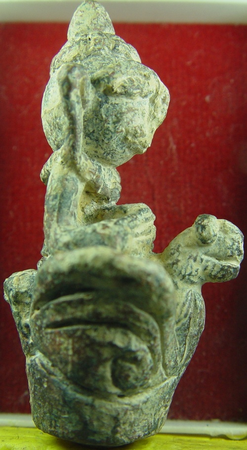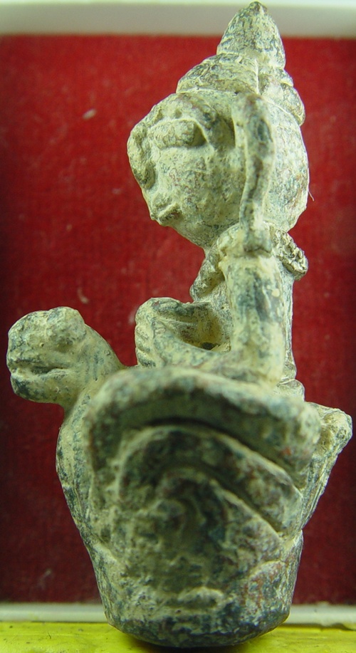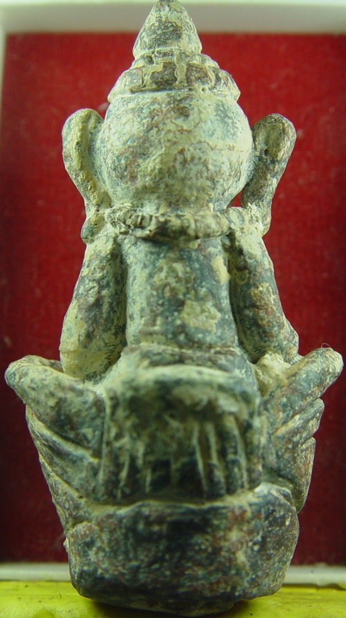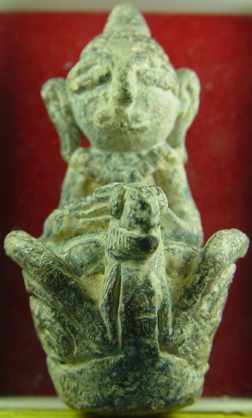 อุปคุตเขมรพันปี (กรุปราสาทภเตชมา:บัณฑายฉมาร์) เนื้อสำริดขอมโบราณพันปี มีน้ำหนักหน่วงมือมากครับ ฐานกว้าง ๒ เซนติเมตร สูง ๓ เซนติเมตร จากฝั่งเขมร กรุเขมร กรุณาสังเกตุคราบกรุของกรุปราสาทภเตชมานะครับ เป็นสนิมแดง ต่างจากกรุปราสาทเขาขาด ลักษณะศิลปะก็ต่างกันครับ สวยมากครับ สมบูรณ์ ๑๐๐% สภาพวัตถุมงคลอายุ ๑๐๐๐ ปีต้องเป็นอย่างนี้ ลักษณะเด่น หูยาวจรดไหล่ คิ้วกับจมูกเป็นเส้นเดียวกัน ตาโปนเป็นแท่ง เศียรคล้ายยอดเจดีย์ เม็ดพระศกสองแถว เม็ดพระศกชัดเจน อุ้มบาตร ************* ฐานวัตถุสมัยโบราณต้องเป็นสัญญลักษณ์เลข ๑ อย่างนี้ครับ จึงจะเป็นวัตถุมงคลเขมรยุคต้น ยุคเดียวกับกริ่งเขมร ยอดหายาก ************* ********* การสร้างรูปหล่อทางพระพุทธศาสนา ตามปราสาทต่างๆของขอมโบราณนั้นเกิดขึ้นในช่วงที่มีการเปลี่ยนเทวสถานเป็นพุทธสถาน ดังนั้นรูปหล่อที่บรรจุกรุตามปราสาทต่างๆนั้นจึงผสมผสานระหว่างพุทธศาสนาคือ พระพุทธ พระสังกัจจายน์ พระอุปคุต เป็นต้น ส่วนรูปหล่อทางพราหมณ์นั้น ส่วนมากจะเป็นเทพ เช่นพระนารายณ์ พระพิฆเณศ เป็นต้น ดังนั้นความขลังของวัตถุมงคลเหล่านี้จึงเป็นที่ยอมรับกันโดยทั่วเพราะผ่านพิธีกรรมทั้งสองศาสนาครับ **************************** นี่คือหนึ่งในพุทธศิลป์ที่น่าทึ่งของเขมร มีประสบการณ์ครับ องค์นี้แสดงดินกรุปราสาทภเตชมาหรือบัณฑายฉมาร์ ที่ยังไม่ได้ล้างดินออก ท่านจะได้เห็นดินในกรุปราสาทบัณฑายฉมาร์ได้ชัดเจน |