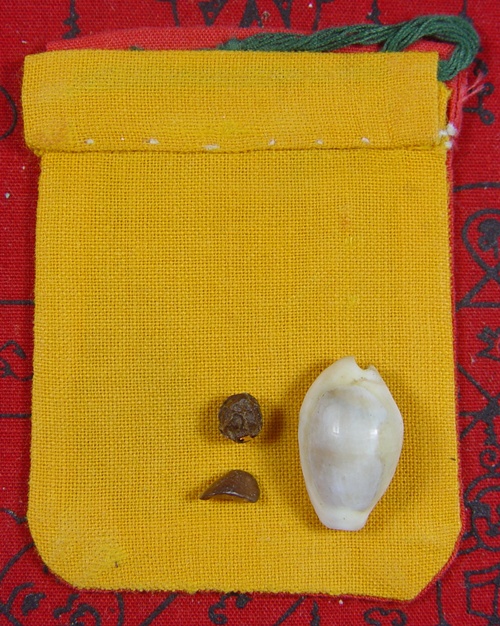 ถุงเหนี่ยวทรัพย์ 3 กษัตริย์ สีเหลือง แดง ด้ายเขียว ด้านหนึ่งสีเหลือง อีกด้านหนึ่งสีแดง ด้ายปากถุงสีเขียว ถุงชิ้นนี้ควรเรีกว่า ถุงปรองดองครับ หายากสุดๆ สุดยอดวัตถุมงคลของคุณแม่บุญเรือน โตงบุญเติม ขนาด 4.5 cm X 6 cm มีของมงคลดังนี้ 1.พลอยเสก 2.เบี้ย 3.พริกไทยเสก 4.คุณแม่จารอักขระขอมโบราณ พุทโธ หายาก |