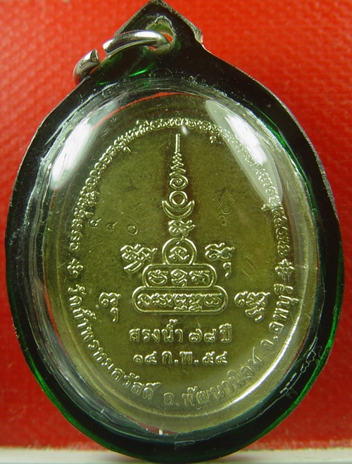 เหรียญไก่ฟ้าคู่บารมี หลวงปู่สรวง วัดถ้ำพรหมสวัสดิ์ อ.พัฒนานิคม จ.ลพบุรี " สรงน้ำ ๗๘ ปี " เนื้อทองแดง ตอกโค๊ตและหมายเลขกำกับเหรียญ สภาพสวยสมบูรณ์ เลี่ยมเดิม |
