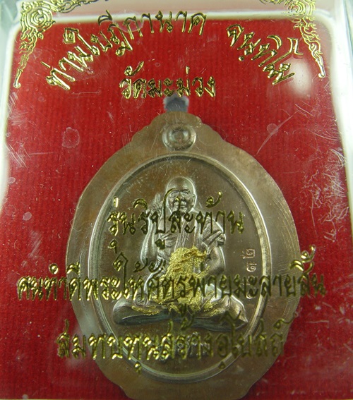 ลป.นาค วัดมะม่วง จ.ตราด เหรียญริปูสะท้าน หลังยันต์มหาอุจ เด่นด้านแคล้วคลาด ปลอดภัย หลวงปู่เจิม พร้อมทั้งอธิษฐานให้ อีก ๑ รอบครับ เหรียญนี้เป็นเหรียญเนื้อทองระฆัง แจกกรรมการ มีเพียง ๒๐๐ เหรียญครับ |