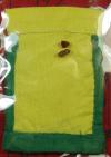 | คุณแม่บุญเรือน โตงบุญเติม ถุงเหนี่ยวทรัพย์ชนิดผ้าหยาบ ถุงครู เย็บมือ / เหลือง เขียว ด้ายขาว ถุง 3 ก | ||