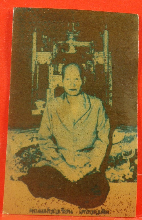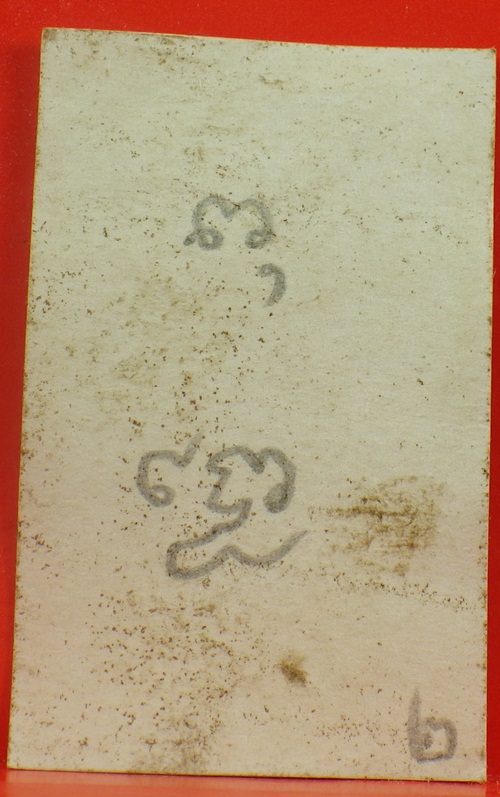 มีจาร คุณแม่บุญเรือน โตงบุญเติม ภาพเก่าอายุระหว่าง 2496 ถึง 2500 ต้นๆ ผ่านการอธิษฐานธรรมจากคุณแม่ มีจารอักขระขอมโบราณคำว่า พุทโธ สภาพถือว่ายังเยี่ยม สุดยอดหายาก เป็นที่ถวิลหาของลูกศิษย์ มีรอยจารมือคุณแม่ด้วยดินสอ เด่นด้านมหาโภคทรัพย์ มหาลาภ |