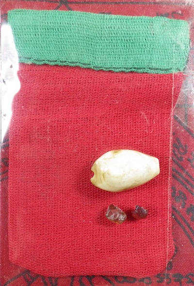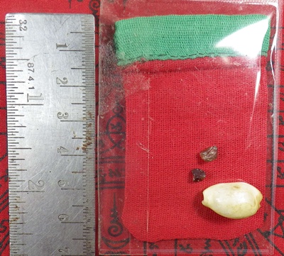 ถุงเหนี่ยวทรัพย์ 2กษัตริย์ คุณแม่บุญเรือน "สีแดงและสีเขียว" มีรอยจารมือด้วยดินสอคำว่า"พุทโธ" ถุงแดงแรงฤทธิ์ -พิชิตโชค/