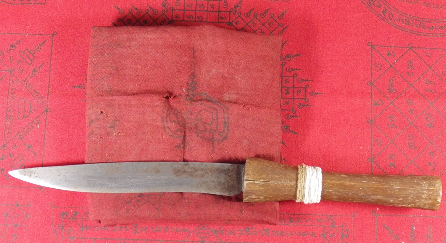 | มีจารหลวงพ่อเดิม วัดหนองโพธิ์ มีดชิ้นครูเก่า สภาพเยี่ยม ยอดหายาก จารยันต์ครูครบสูตร | ||