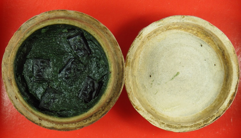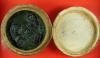 ลพ.ทาบ วัดกระบกขึ้นผึ้ง สีผึ้งเขียว ตลับดินเผาโบราณเก่า เดิมๆพร้อมแช่นางกวักหายองค์ ของบ้าน น่าใช้ |