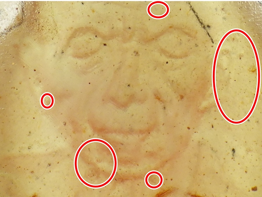 ลป.ทิม วัดระหารไร่ ระยอง พระผงจันทร์ลอยผสมเกศา จีวร หลวงปู่ทิม มีพระธาตุผุดตามองค์พระทั่วองค์ มีเกศาหลวงปู่เยอะมาก เลี่ยมเดิมจากวัด |