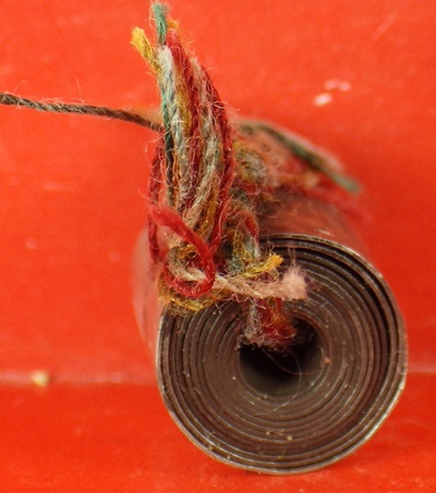 | ตะกรุดลูกอมโลกธาตุเนื้อเงินหลวงปู่ใจ วัดเสด็จ ลูกนี้มีรอยจารติดมาด้วย | ||