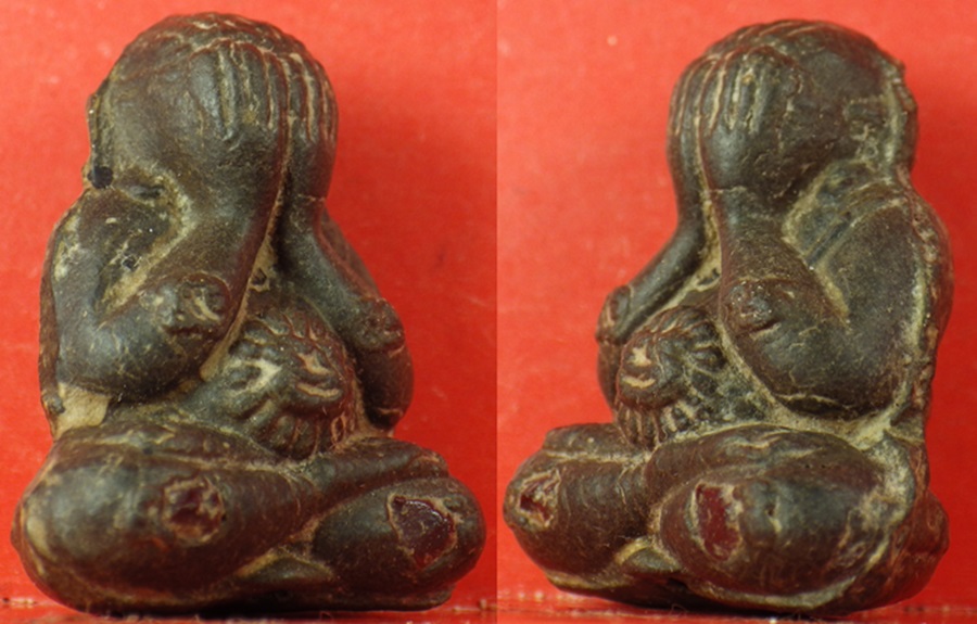 พระผงปิดตารุ่นไตรมาสรวยทันใจ มีพิมพ์เดียว (ขนาดกว้าง ๒ ซ.ม.สูง ๒.๕ ซ.ม.) พิมพ์ทรงสง่างามเข้มขลัง รายละเอียดอ่อนช้อยงดงามคลาสสิค ขนาดกำลังสวยพอเหมาะสำหรับเลี่ยมขึ้นคอบูชาทั้งบุรุษและสตรี มีหลายเนื้อหลายโทนสี ขึ้นอยู่กับชนวนมวลสารที่ใช้ผสมสร้าง ซึ่งขึ้นกับรสนิยมความต้องการของผู้เช่าบูชา มีทั้งไม่ตอกโค้ด , ตอก ๑ โค้ด , ตอก ๒ โค้ด , ตอกหมายเลขและไม่ตอกหมายเลขกำกับ เพื่อเป็นสัญญลักษณ์ แบ่งแยกมวลสารของพระแต่ละประเภท แบบที่ ๑๒ เนื้อข้าวเหนียวดำ เนื้อน้ำตาลอ่อนอมเทา (ตอก ๑ โค้ด) ส่วนผสมมวลสารหลัก ได้แก่ ข้าวเหนียวดำ ผงแร่ ข้าวก้นบาตรหลวงปู่หมุน และยังมีผงกสิณไฟหลวงปู่สรวง ผงว่าน ผงพุทธคุณ ๑๐๘ ผงชานหมากหลวงปู่หมุนรวมอยู่ด้วยจำนวนสร้าง ๒๐๐ องค์ แบ่งออกเป็น ๒ แบบ ได้แก่ องค์นี้ฝังพลอย 2 เม็ด ฝังเหล็กน้ำพี้ ตอกโค๊ต 3 โค๊ต สภาพ 100% |