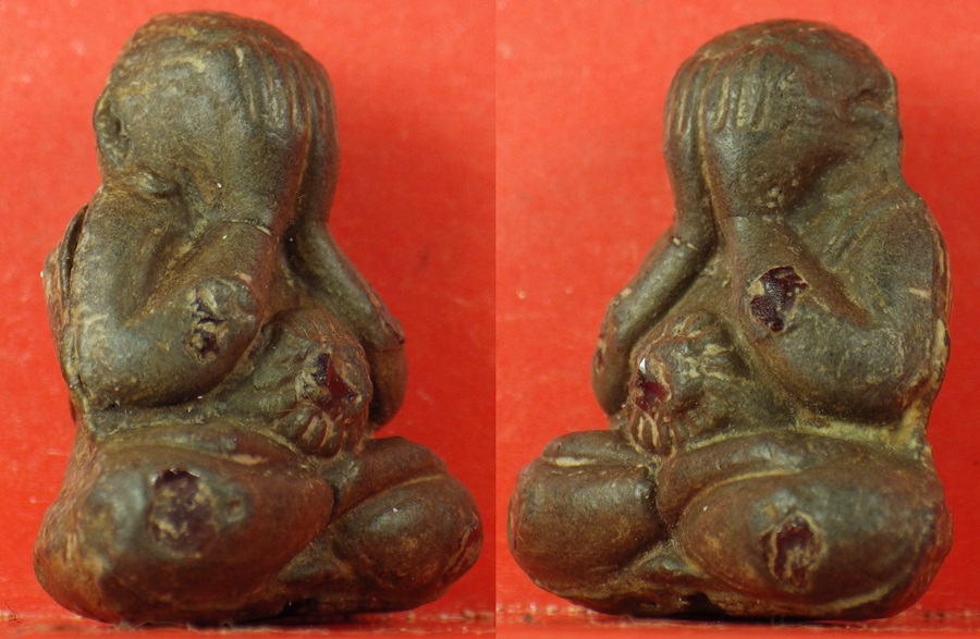 พระผงปิดตารุ่นไตรมาสรวยทันใจ มีพิมพ์เดียว (ขนาดกว้าง ๒ ซ.ม.สูง ๒.๕ ซ.ม.) พิมพ์ทรงสง่างามเข้มขลัง รายละเอียดอ่อนช้อยงดงามคลาสสิค ขนาดกำลังสวยพอเหมาะสำหรับเลี่ยมขึ้นคอบูชาทั้งบุรุษและสตรี มีหลายเนื้อหลายโทนสี ขึ้นอยู่กับชนวนมวลสารที่ใช้ผสมสร้าง ซึ่งขึ้นกับรสนิยมความต้องการของผู้เช่าบูชา มีทั้งไม่ตอกโค้ด , ตอก ๑ โค้ด , ตอก ๒ โค้ด , ตอกหมายเลขและไม่ตอกหมายเลขกำกับ เพื่อเป็นสัญญลักษณ์ แบ่งแยกมวลสารของพระแต่ละประเภท แบบที่ ๑๒ เนื้อข้าวเหนียวดำ เนื้อน้ำตาลอ่อนอมเทา (ตอก ๑ โค้ด) ส่วนผสมมวลสารหลัก ได้แก่ ข้าวเหนียวดำ ผงแร่ ข้าวก้นบาตรหลวงปู่หมุน และยังมีผงกสิณไฟหลวงปู่สรวง ผงว่าน ผงพุทธคุณ ๑๐๘ ผงชานหมากหลวงปู่หมุนรวมอยู่ด้วยจำนวนสร้าง ๒๐๐ องค์ แบ่งออกเป็น ๒ แบบ ได้แก่ องค์นี้ฝังพลอย 5 เม็ด ฝังเหล็กน้ำพี้ ตอกโค๊ต 1 โค๊ต สภาพ 100% |