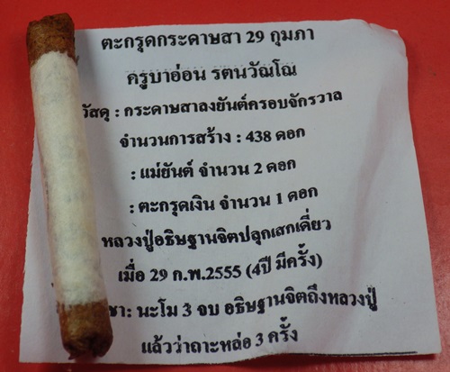 | ลป.ครูบาอ่อน วัดสันต้นหวีด พะเยา ตะกรุดกระดาษสา สร้างน้อย หายาก รับกับมือหลวงปู่ | ||