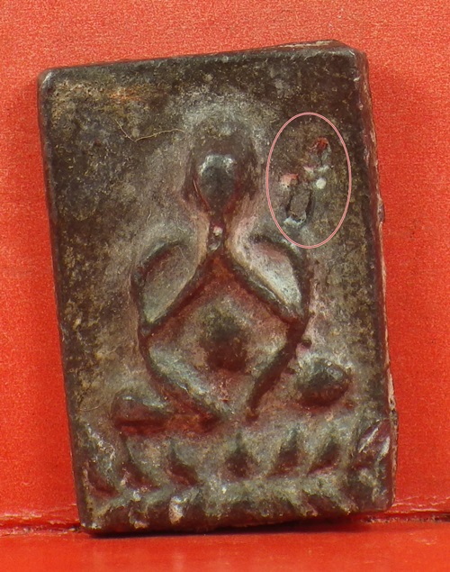 | ลป.ศุข วัดปากคลองมะขามเฒ่า พระปิดตาเนื้อชินเก่า มีจารยันต์ ด้านหลังและตอกอักขระ ด้านหน้า | ||