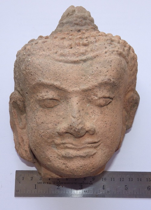 เศียรพระพุทธหินทราย ศิลปะแบบเขมรที่พบในประเทศไทย แบบบายน
