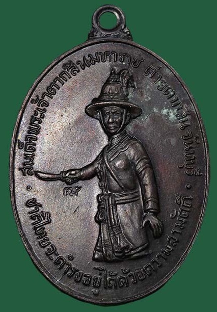 ลป.ทิม วัดละหารไร่ เหรียญพระเจ้าตากสิน บล็อคไหล่เรียบ สระอาแตก สวยมาก บรรยายด้วยภาพ คำว่า "ราช" สระอา แตกเป็นเส้นยาวลงมาถึงพระมาลา คำว่า "ดำรง" สระอา แตกลงมาถึงขอบเหรียญด้านล่าง ในโค๊ต ตส มีเส้นแตก 3 เส้น