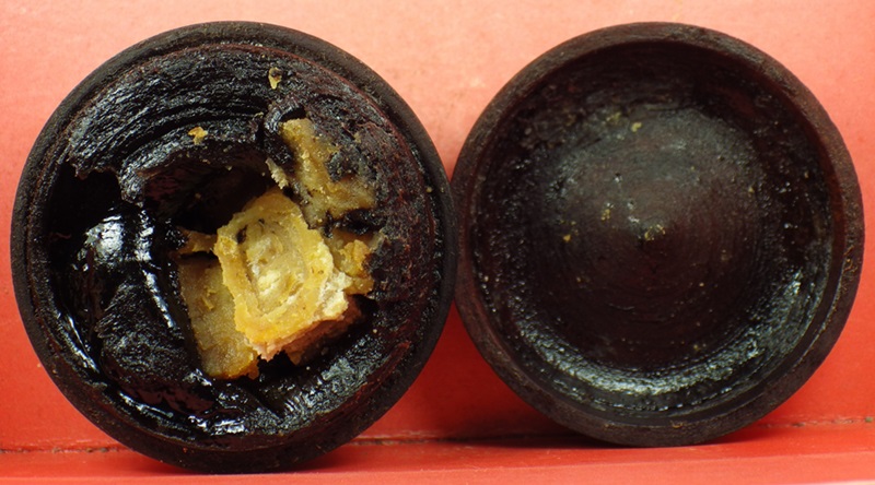 สีผึ้งเขียว ลพ.ทาบ วัดกระบกขึ้นผึ้ง ระยอง ตลับไม้เก่าโบราณลงรัก เมตตามหานิยมเป็นเยี่ยม สีผึ้งเต็มตลับพร้อมของมงคลภายในอยู่ครบ |