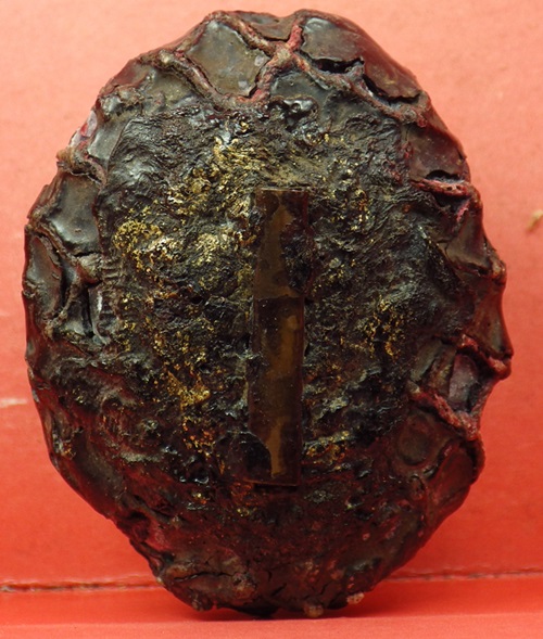 เบี้ยแก้เก่าโบราณ ลงรัก ชาด ปิดทองเก่า ปิดด้วยตะกรุด 1 ดอก เกจิโบราณกันคุณไสย ปกป้องคุ้มครอง ทองที่ปิดเก่ามากออกเหลืองเขียว |