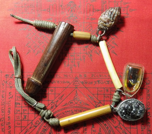 | ชุดเครื่องราง หมากทุยถักเชือกลงรักแดง ปลัดไม้ตับเต่า ตะกรุดกระดุกห่าน ตะกรุดไม้ใผ่ตัน แร่เกาะล้านจาร | ||