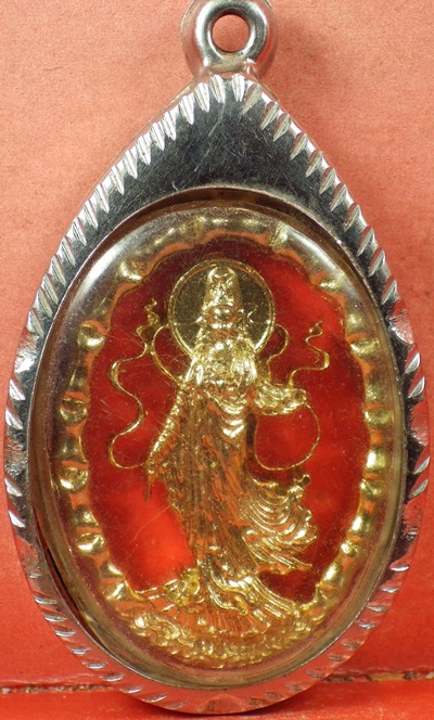 เหรียญฉลุ พระโพธิสัตว์กวนอิม เลี่ยมเก่า น่าใช้