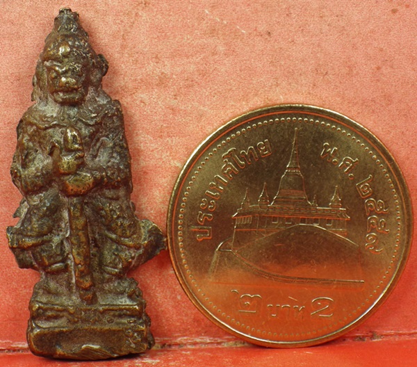 ท้าวเวสสุวรรณ วัดสุทัศน์ ฐานผ้าทิพย์ ปี ๒๔๙๐ เทพเจ้าแห่งความมั่งคั่ง กันภูติผีปิศาจ อาจารย์เกี๊ยก ทวีทรัพย์ ผู้ชำนาญเรื่องพระกริ่งและรูปหล่อเกจิอาจารย์รุ่นเก่าได้กรุณาให้ข้อมูลว่า..,การที่ท่าน เจ้าคุณศรีฯได้เททองหล่อรูปท้าวเวสสุวรรณก็ เพราะว่าท่านได้สร้างโบสถ์หลังใหม่พร้อมกับพระประธานไว้ที่วัดศรีจอมทอง อ.พระพุทธบาท จ.สระบุรี ที่เป็นวัดแถบบ้านเกิดของท่าน ในตำบลป่าหวาย ท่านได้เริ่มสร้างพระอุโบสถมาตั้งแต่ พ.ศ.2490 เป็นลำดับมา วัดนี้อยู่ในกลางป่า ทำให้คนงานที่ไปทำงานเกิดอาการหวาดกลัวมาก เพราะถูกผีหลอกอยู่บ่อยๆ จนชาวบ้านและช่างที่กำลังก่อสร้าง ได้มาร้องเรียน ว่าถูกผีหลอกอยู่เสมอๆ จนขวัญหนีดีฝ่อไม่เป็นอันทำงาน !!! เมื่อท่านเจ้าคุณศรี (สนธิ์) ได้ทราบเรื่องราวแล้ว และท่านได้กลับมาที่วัดสุทัศน์ ท่านจึงได้สร้าง ท้าวเวสสุวรรณ เพื่อให้คนงานใช้ติดตัวป้องกันและขจัดภูตผีปีศาจ โดยได้สร้างรูปท้าวเวสสุวัณ แบบรูปลอยองค์ ลักษณะคล้ายกับยักษ์วัดแจ้ง คือยืนถือกระบองแล้วนำไปแจกแก่ญาติโยมเพื่อไว้กันผี และหลังจากที่ท่านได้นำไปแจกแล้ว เรื่องผีปีศาจก็เงียบหายไป.... |