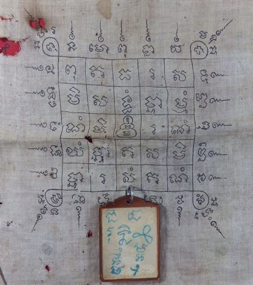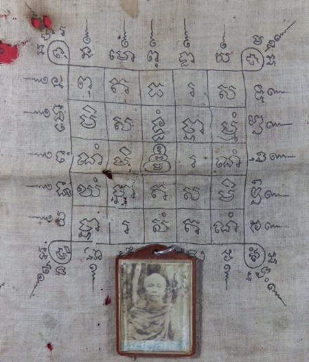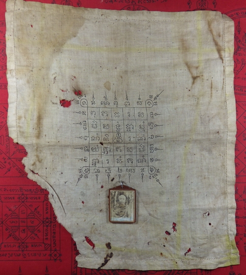 ลพ.โชติ วัดตะโน ผ้ายันต์พ้อมรูปเก่า หลังจารยันต์ สวย เก่า คลาสสิค
