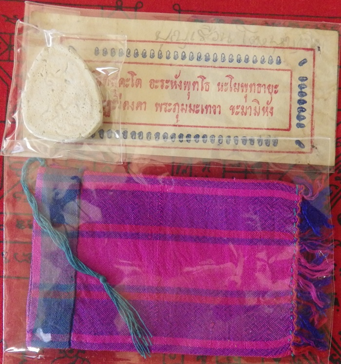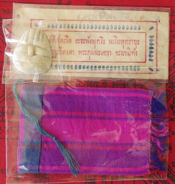 ถุงเหนี่ยวทรัพย์ (ถุงครู) พระปิดตาพุทโธ และแผ่นคาถาจารมือ คุณแม่บุญเรือน | ||