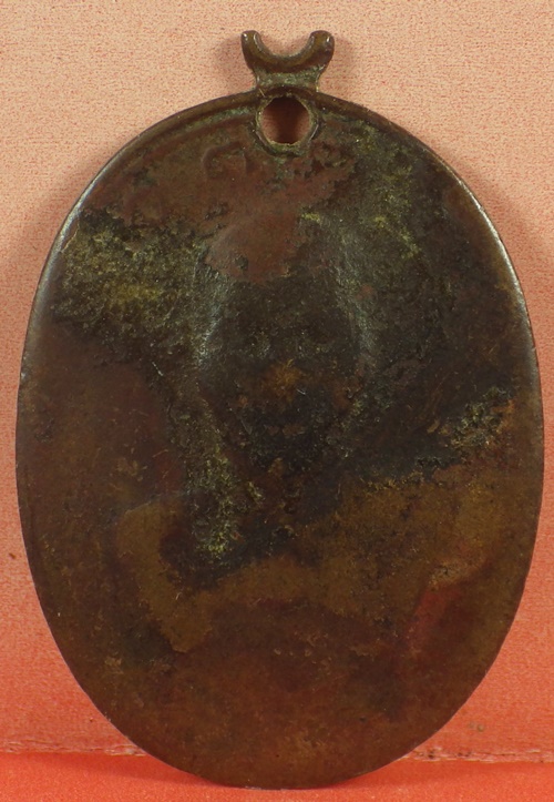 เหรียญเก่าโบราณ ไม่ทราบที่ สภาพใช้มาอย่างโชกโชน ขนาดหูเหรียญขาดยังเจาะรูแขวนต่อ แสดงว่าไม่ธรรมดา